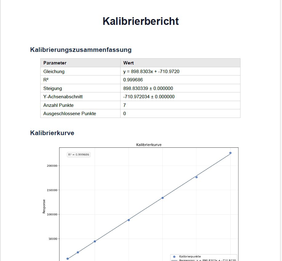 Complete calibration curve software for analytical laboratories to GLP/GMP requirements. Guided 5-step workflow from method definition to regulatory report — with audit trail, statistical diagnostics and automatic PDF output.